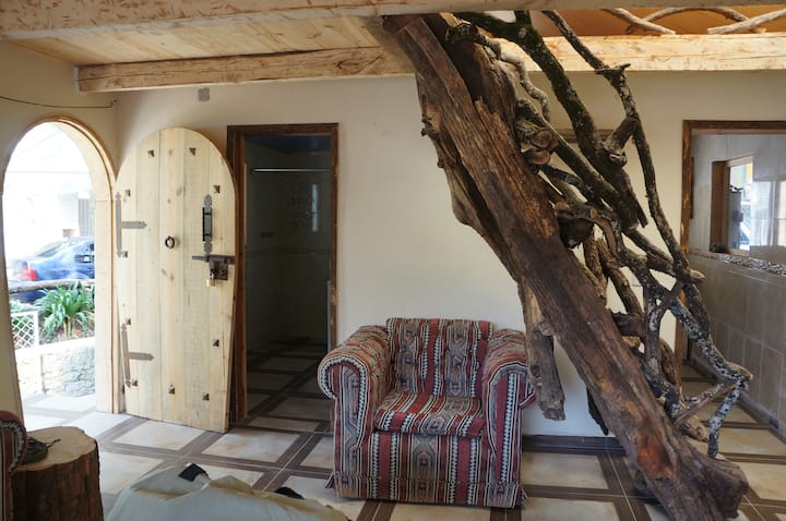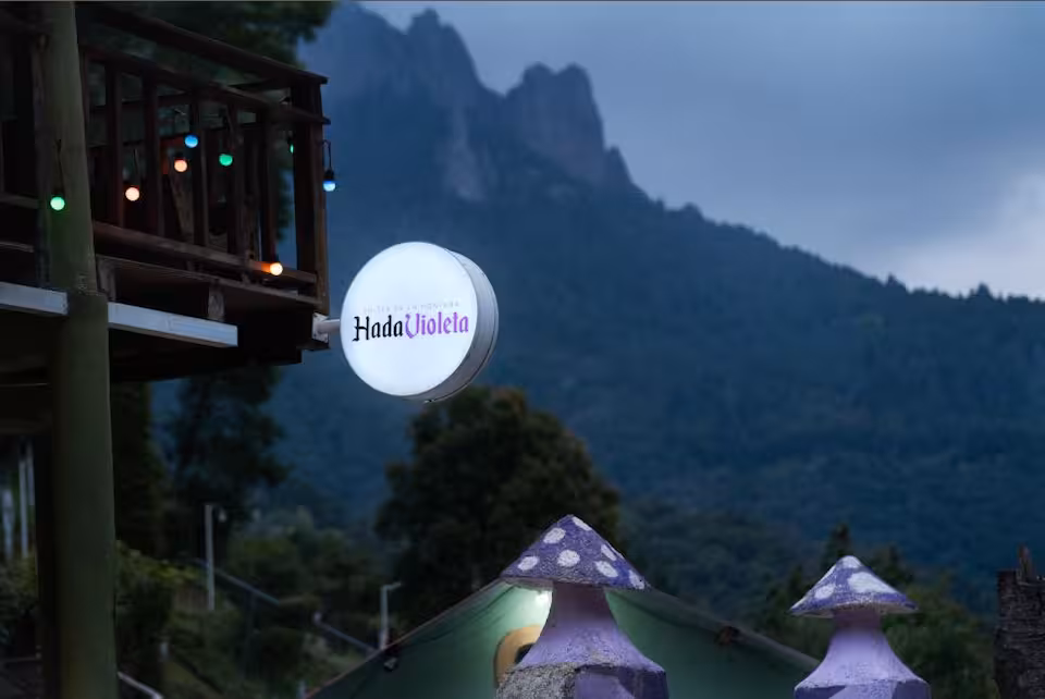Hada Violeta está a solo 5 minutos del centro de Mineral del Chico, un pueblo minero lleno de historia y leyendas. Aun así, es un rincón sorprendentemente tranquilo y silencioso: aquí puedes escuchar el murmullo del río, respirar aire puro y contemplar una vista acogedora, rodeada de imponentes árboles y montañas.