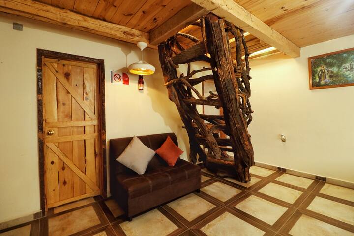 A solo unos minutos del Centro Histórico de Mineral del Chico, Hidalgo, te espera un refugio de montaña rodeado de bosques de pino, aire puro y el murmullo de un riachuelo que baja por la ladera.