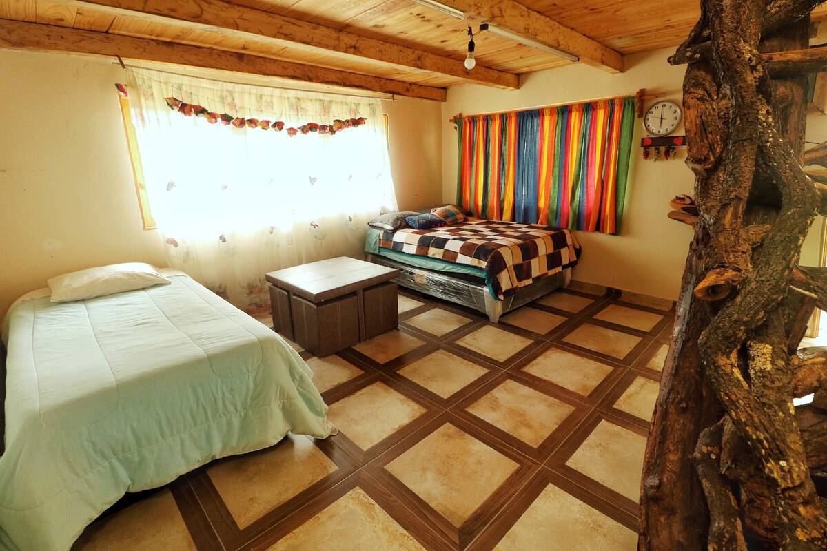 Nuestro conjunto cuenta con 6 cabañas cálidas y acogedoras, perfectas para escapadas en pareja, con amigos o en familia. Disfruta una tarde de parrillada en los amplios jardines con asadores, organiza un mini torneo en el salón de juegos (mesa de pool y ping pong), o simplemente relájate en la terraza mientras te conectas con la naturaleza.
